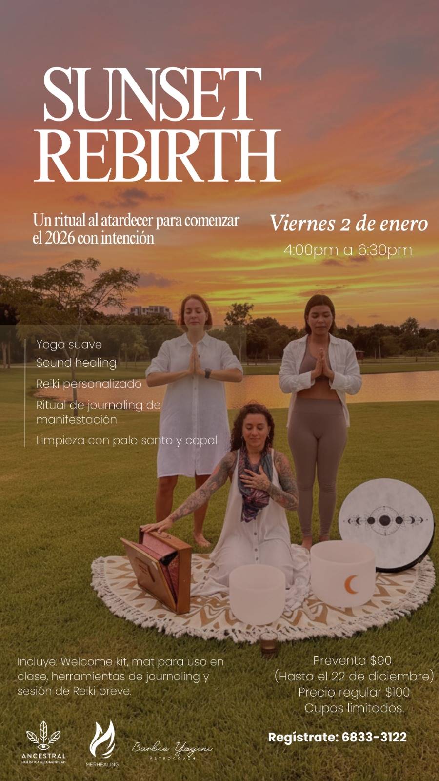 🎁 Incluye welcome kit, mat para uso en clase, herramientas de journaling y sesión breve de Reiki.